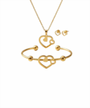 Expresse sua elegância com este magnífico conjunto de joias combinando, projetado para durar. Este conjunto completo apresenta um design atemporal e romântico, com motivos de corações entrelaçados e vazados, perfeito para realçar um look do dia a dia ou adicionar um toque de sofisticação a um traje de noite.
